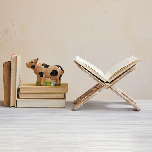 Hand-Painted Stoneware Cow Shaped Vase w/ Grass, Crackle Glaze
