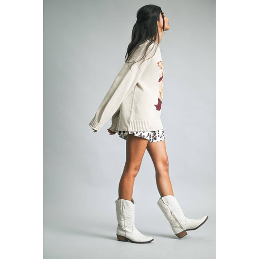 COWBOY BOOTS WITH RIBBON KNIT SWEATER