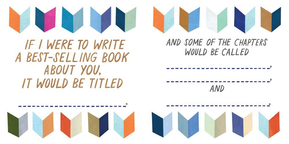 DADicated is a whole fill-in-the-blank book about and for your dad! Perfect for Father’s Day, birthdays, or special events, these amusing prompts encourage you to reflect on the quirks and memories that make your relationship so unique. Be silly or serious as you create a one-of-a-kind gift with fill-in-the-blanks such as: Every time I need to know how to ______, I call you; The craziest thing I’ve ever seen you eat was _______; I was in SO much trouble with you that time I ________, but I definitely learned _______; and No matter how much you tell me ___________, I always seem to forget!